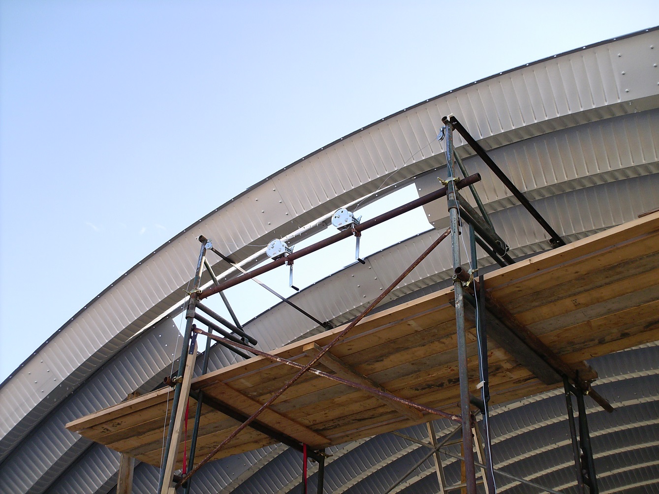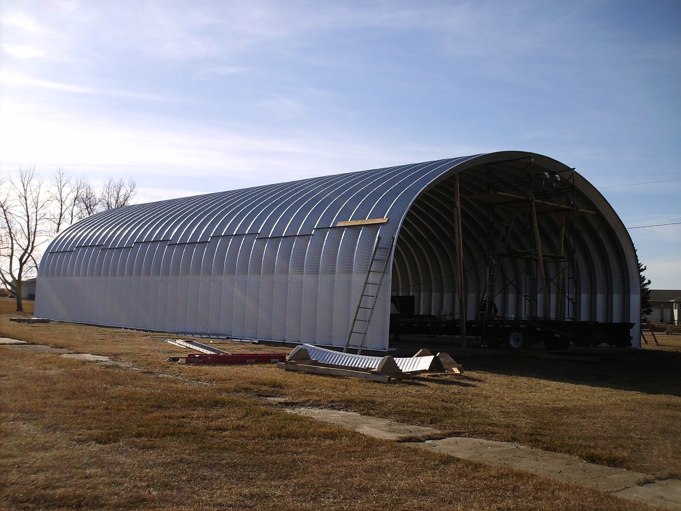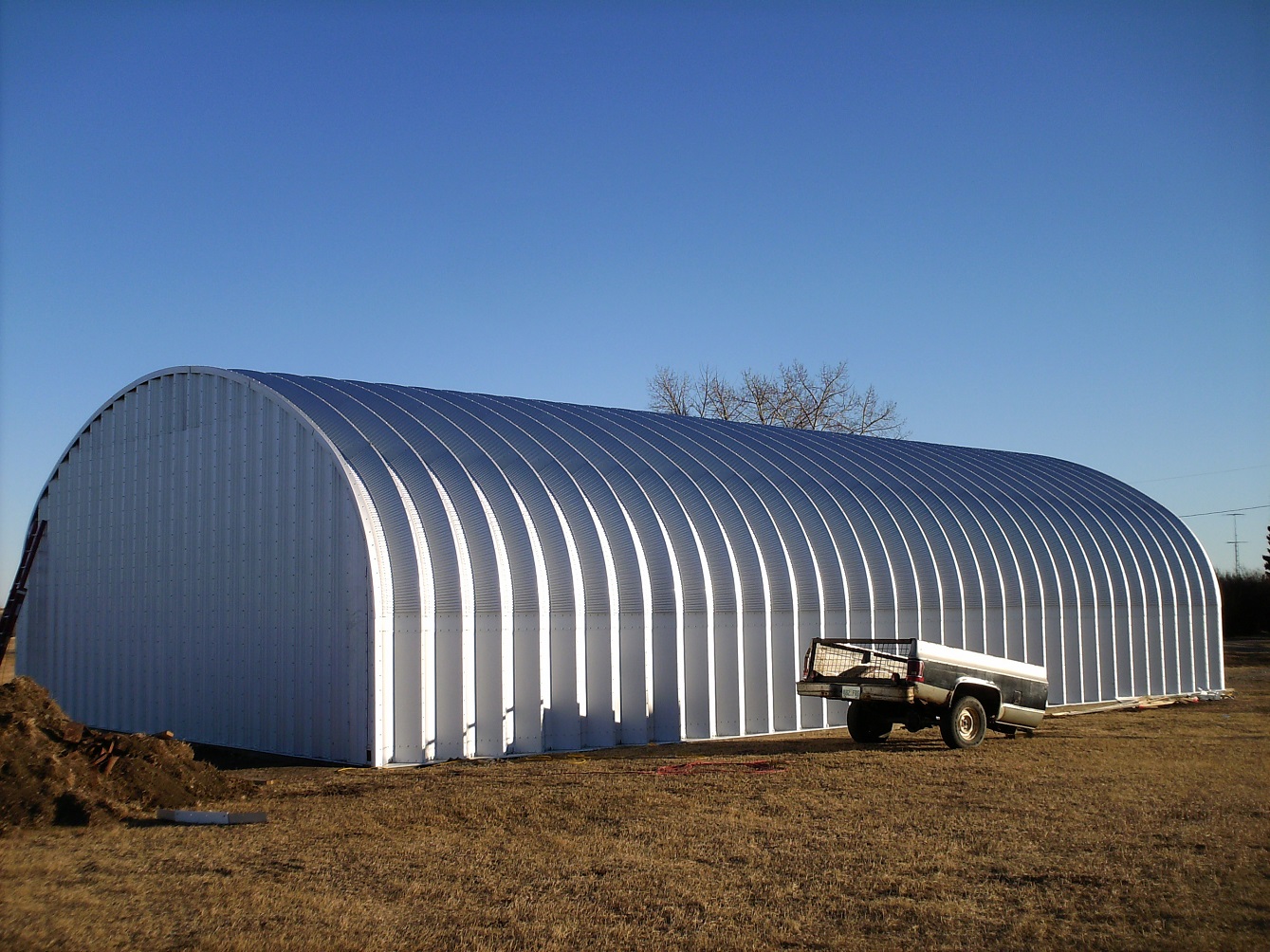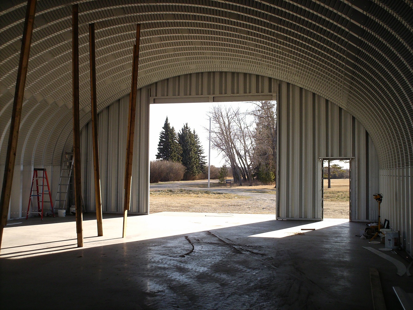 Through Vince, we were asked to erect a steel quonset in the town of Baldwinton, Saskatchewan. This was our first major challenge since Robert's accident. In fact, it was such a challenge, twice we almost gave up. But somehow, by God's leading, we were given to succeed. we were not able to install the over-head door until January where the temperature was dipping into the "ouch" zone. |